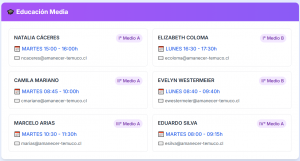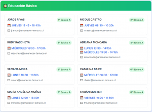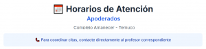 Las citas deben agendarse con 24 horas de anticipación a través de la agenda escolar o contactando directamente al profesor.