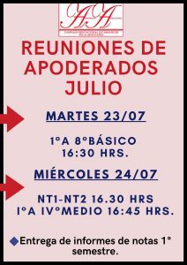 Aviso REUNIÓN APODERADOS JULIO 2024