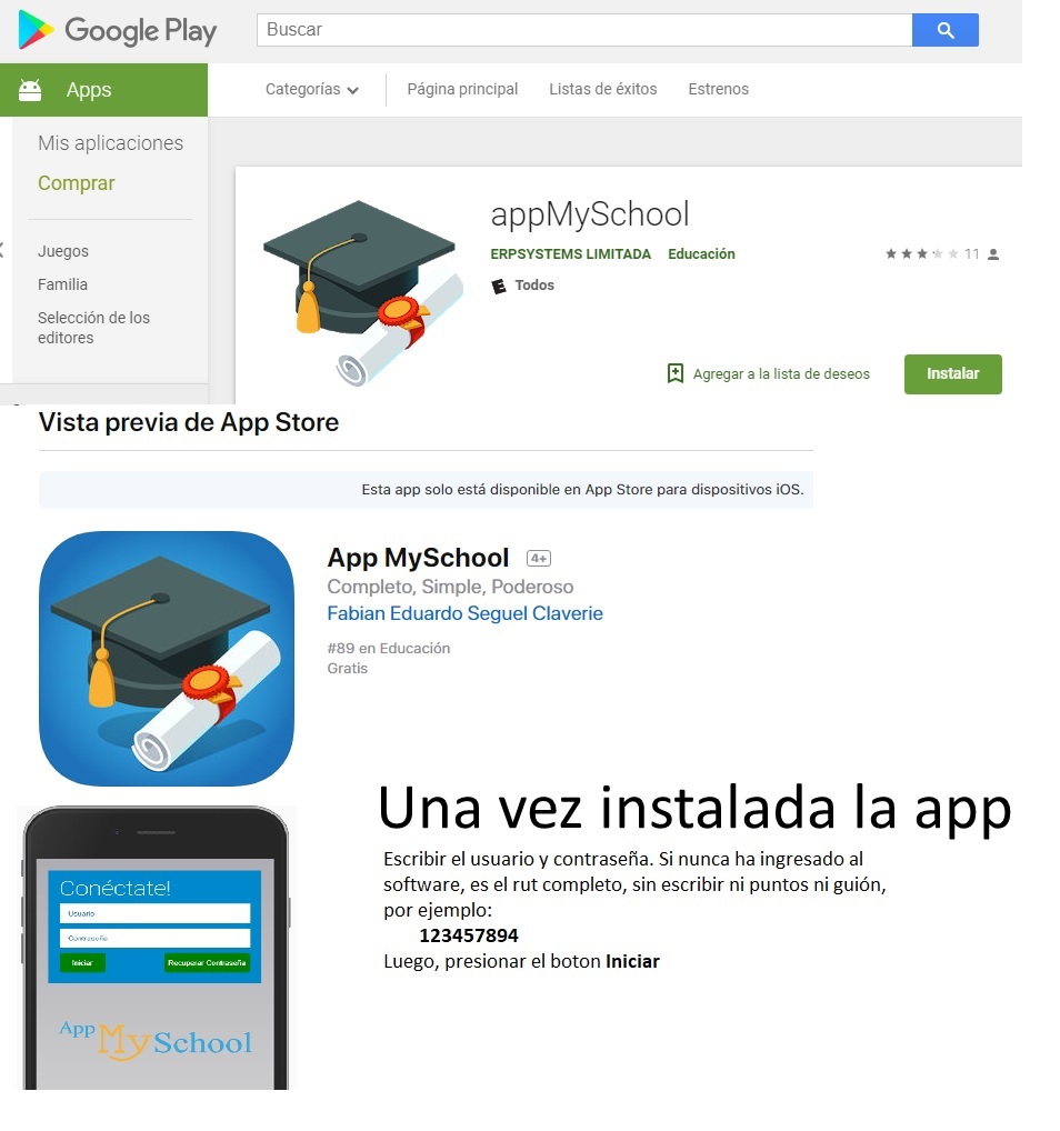 Le invitamos a instalar y revisar nuestra app en PlayStore o AppleStore buscando app MySchool